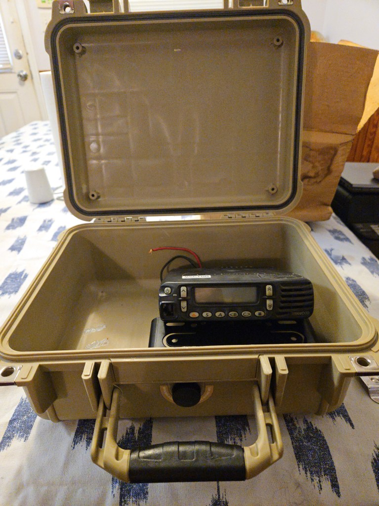 Our current plan for go-boxes is to acquire waterproof boxes from Harbor Freight (specifically the Apache 2800) and placing our radios in there.